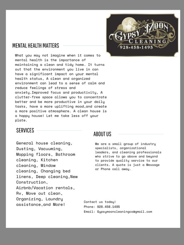 At Gypsy Moon Cleaning LLC. our mission is to provide top-notch home cleaning services that exceed our clients' expectations. We strive to create a clean and healthy environment for our clients to relax and enjoy their homes.
